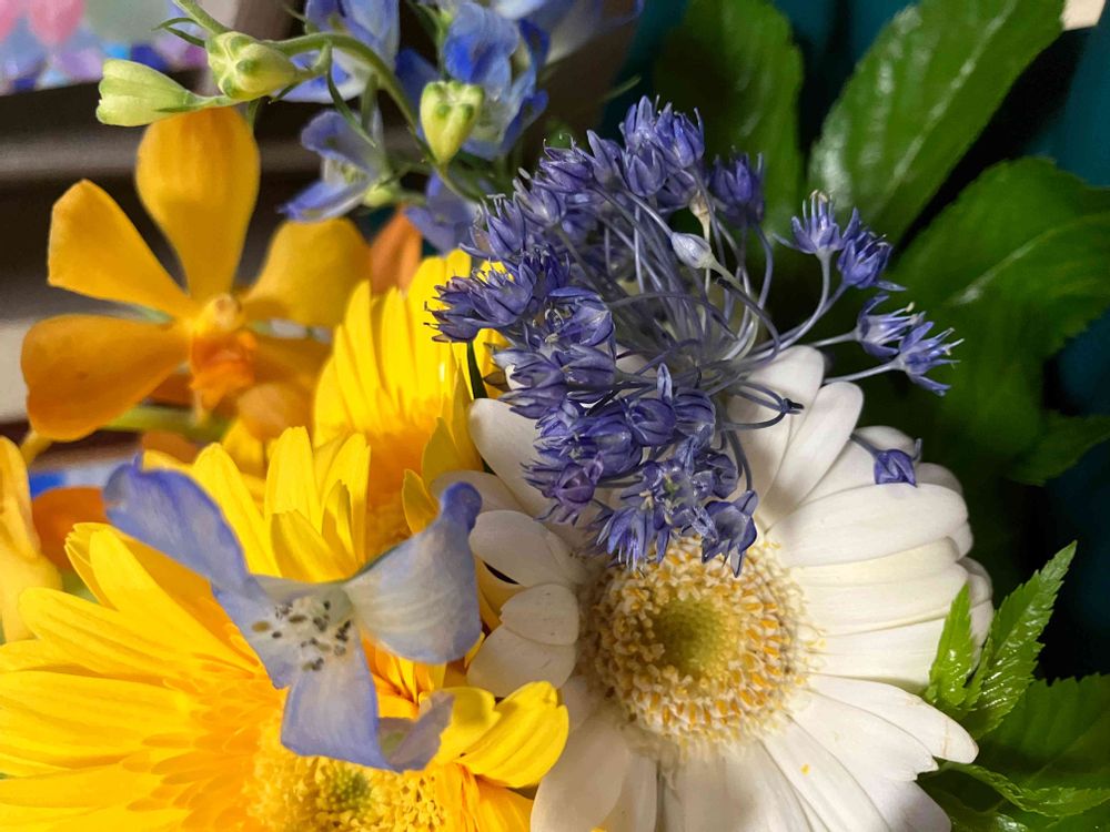 青いトゲトゲしたお花は何でしょうか?ネギかのお花にも見えますが違うかもしれません。