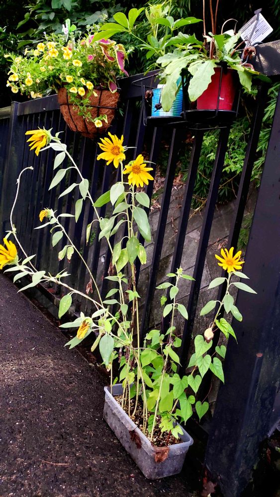 4月に山下公園でマルシェで頂いた、種からから育てたひまわりが沢山咲いています🌻