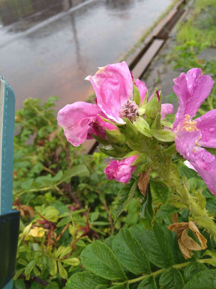 雨に濡れながら