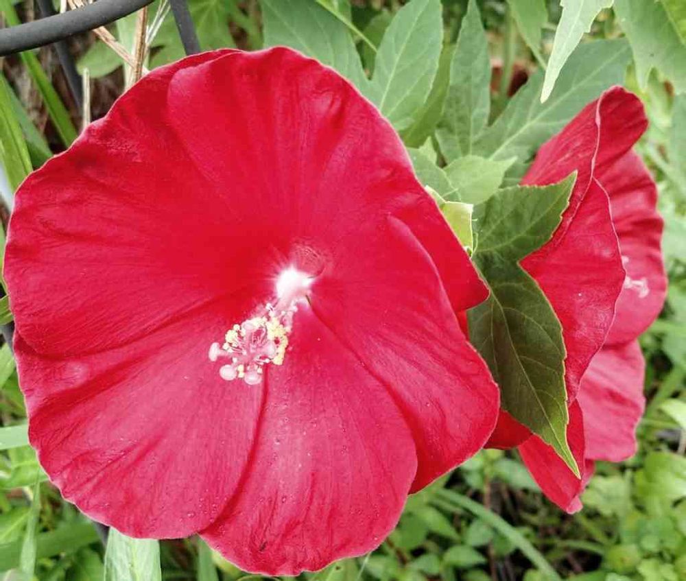 真っ赤な火曜日~💖😍タイタンビカス・キッズレッドも咲いています😊真っ赤で、背丈が低く、60センチくらいにしかなりません。花径もタイタンビカスとしては小さめで、12センチ前後ですね、ウラノスの半分くらいしかありません🎶