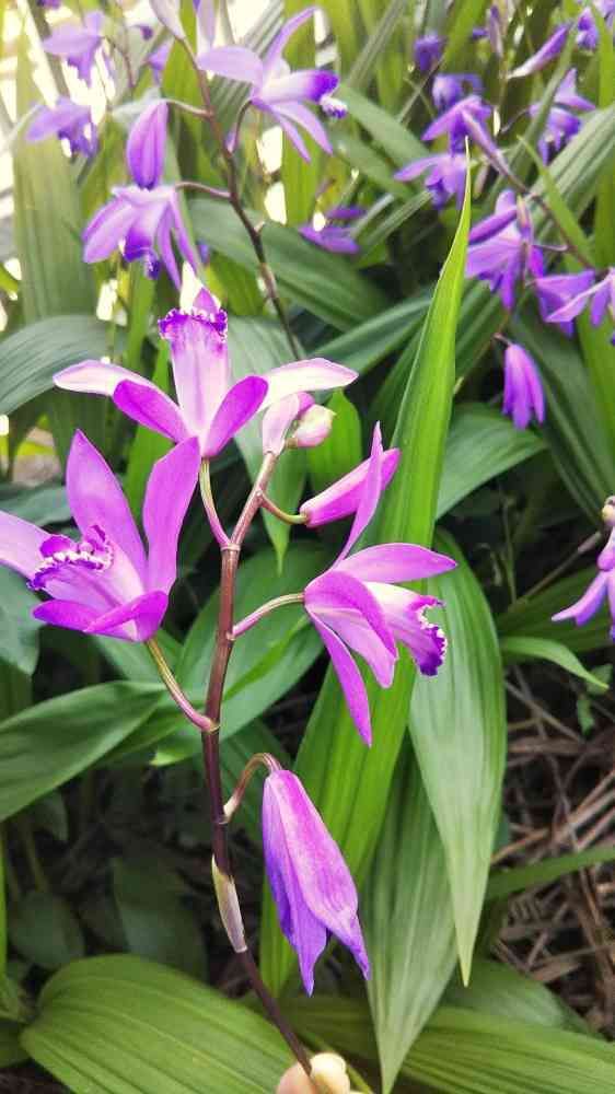 ピンク寄りの紫も素敵です、さすが紫蘭(*^^*)笹の葉のような平行脈の葉もキレイです!