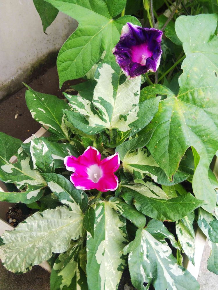 斑入り葉 朝顔,朝顔 宇宙,鉢植えの投稿画像