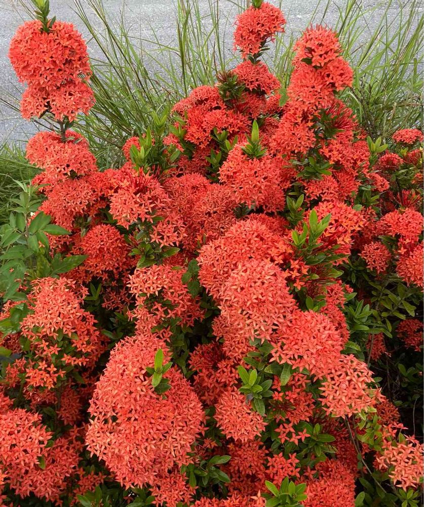 サンタンカ、今年はてんこ盛りで咲いてるような?街中が赤に染まってます。咲きすぎてBBQ🍖状態になってるところも😄