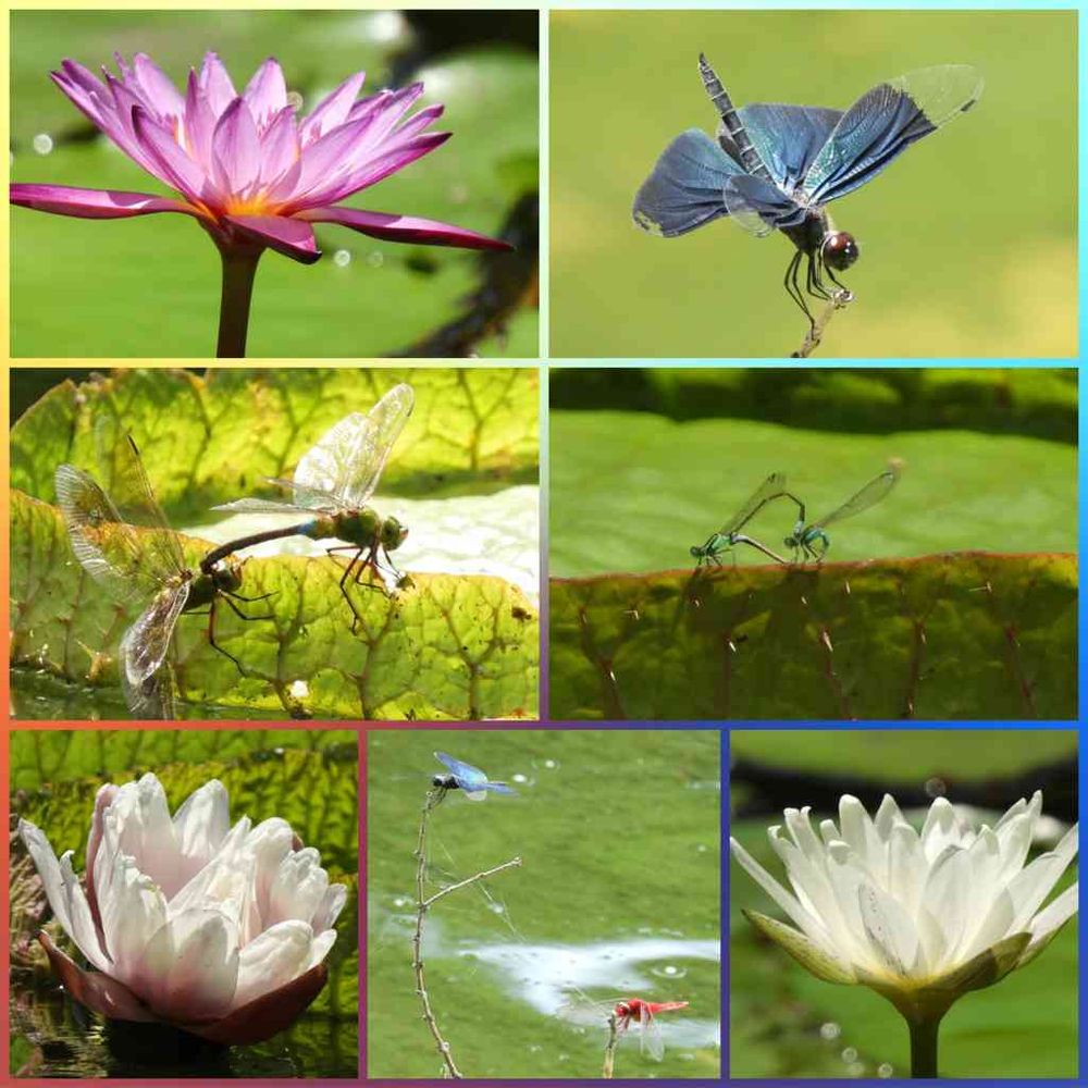 睡蓮(スイレン)とパラグアイオニバスが咲く水辺にトンボさん達も恋の季節💕
