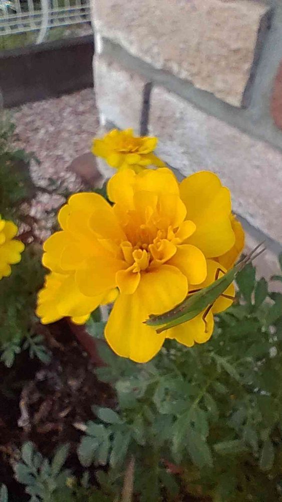 バッタさんがマリーゴールドからごあいさつ😊💛