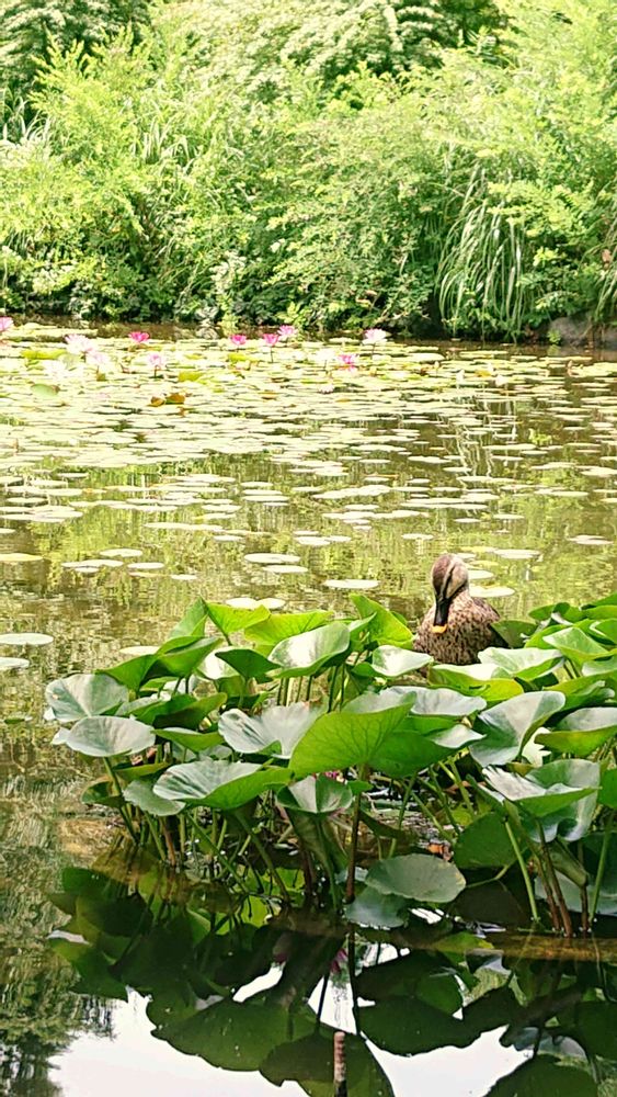 蓮を見に行きました。素敵な池です。蓮ではなく、🦆がさいてますけど💧