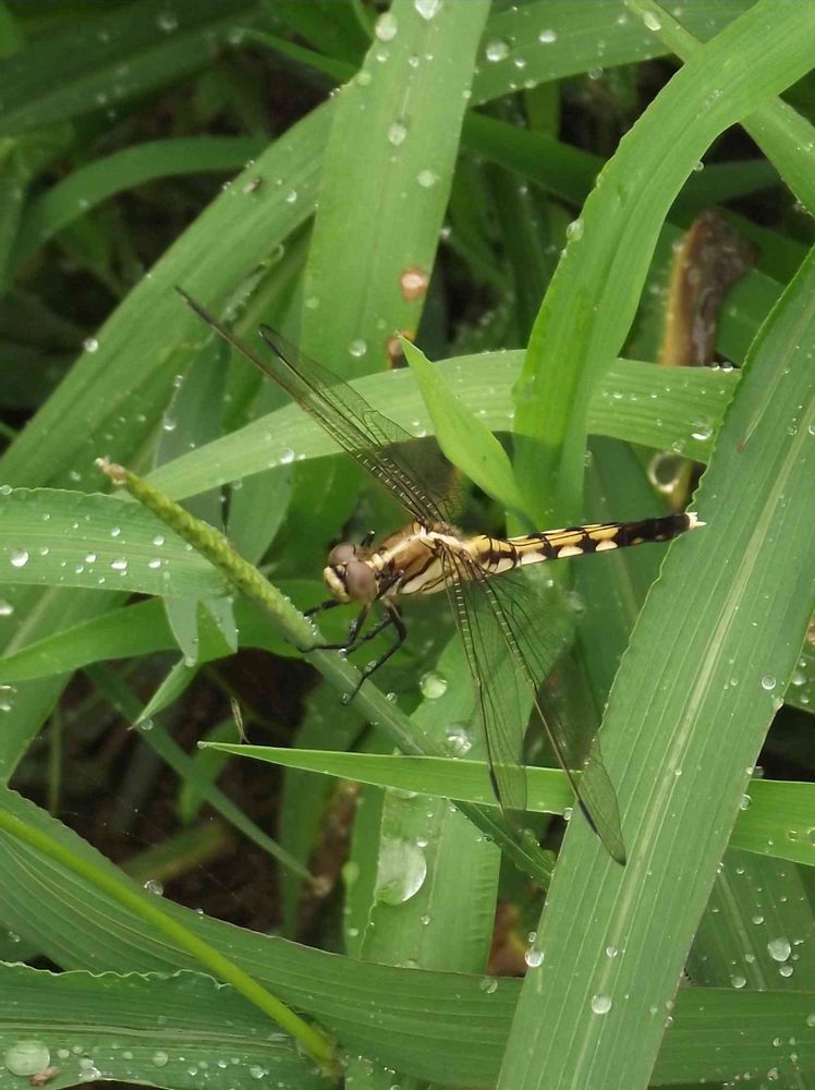 朝露にまぎれてシオカラトンボを発見しました(☆∀☆)キラーン!