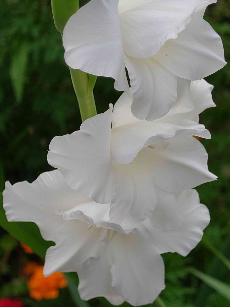 真っ白なグラジオラス…ちょっと荒れ果てた花壇にポツンと咲くその姿は見目麗しく「いつからそこに居るの…❓」と声を掛けたくなる程でした😌