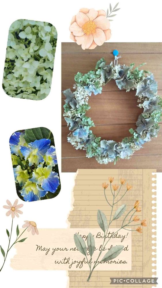 紫陽花のリース、色がとっても綺麗ですね💚💙