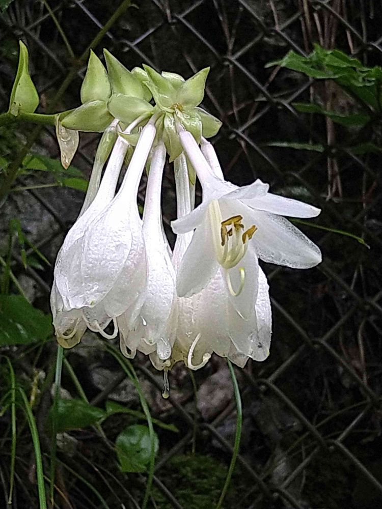 崖っ淵の岩間に咲く蝋細工?の花 山県市神崎川筋