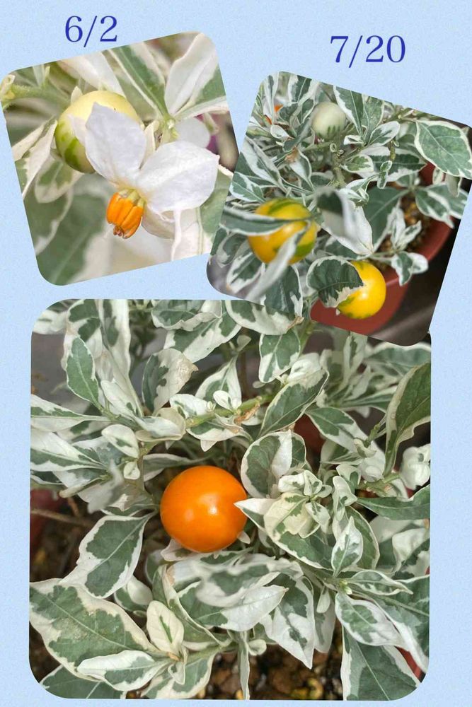 Bookmarkさんの斑入りソラナム スノーサンゴ,白い花,斑入り。の投稿画像