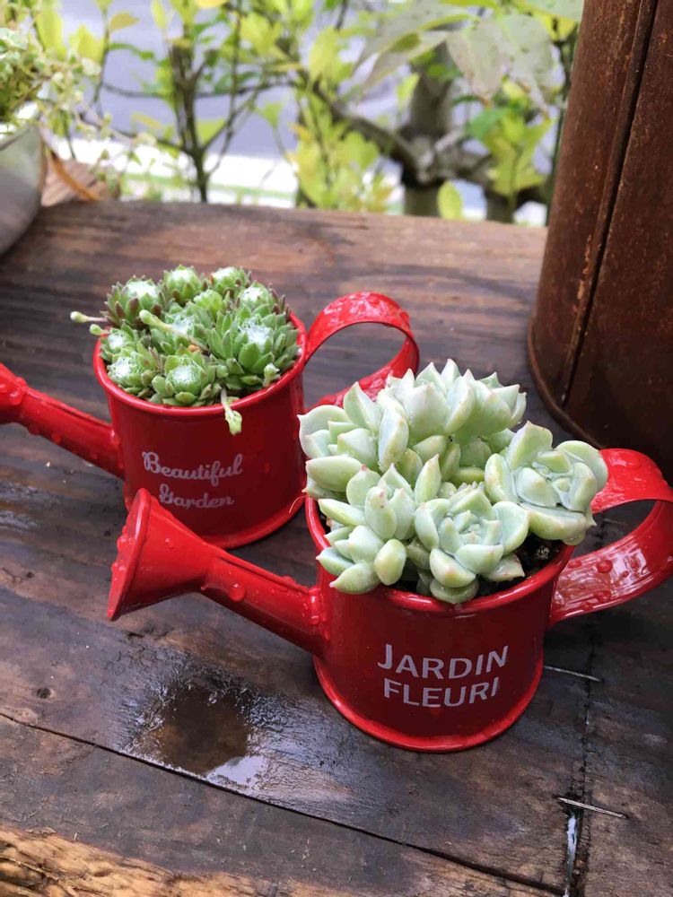 次の販売会のイベント用に、赤のブリキジョーロに寄せ寄せ♩