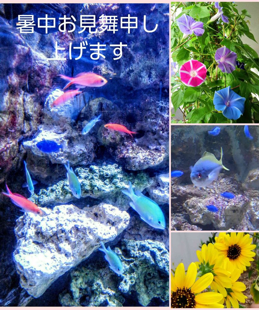 こんばんは。心温まる暑中見舞いを有難う御座います。夏のお花と涼しげな熱帯魚の写真が、涼やかさを運んでくれました。どうぞあなたもお身体、ご自愛下さい。