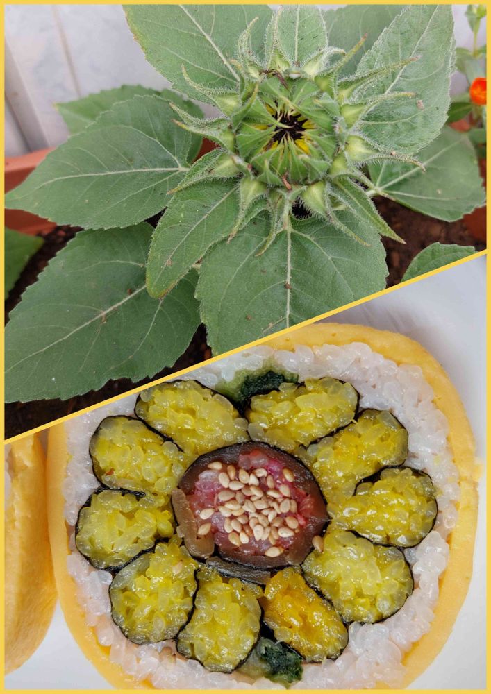 6月28日の紫陽花の巻き寿司投稿💙一緒に、入っていたヒマワリの巻き寿司🌻