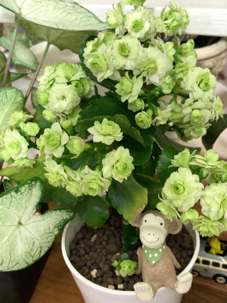 仕事帰りの花屋さん🌼グリーンのお花が目にとまり見てみるとお値下げ価格200円❣️連れて帰りましたー😁さっそく記念撮影🤳🪴グリーンがきれいです✨