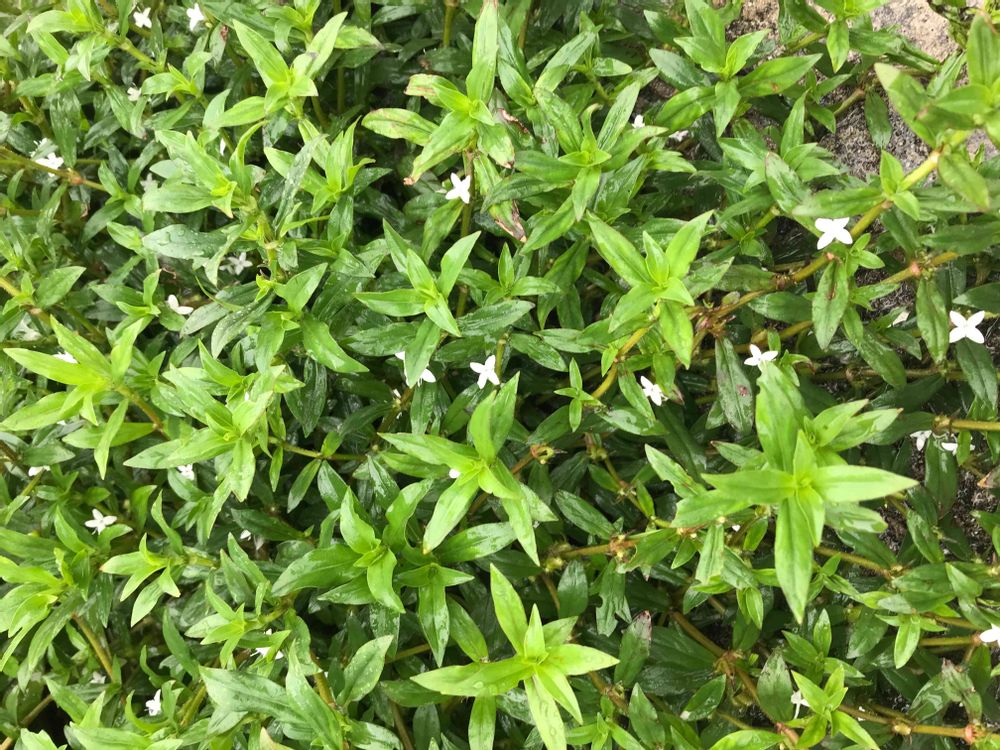 1センチくらいの小さい白い花、花びら4枚、おしべもめしべも糸のように細くて真っ白。この花なんでしょう❓道路に咲いていました。