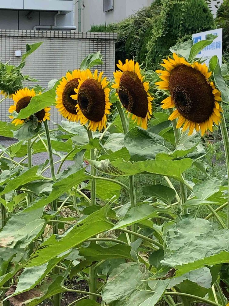 綺麗に揃ったヒマワリさん、どこかの植え込みにひょっこり頭を出していそうですね。😉🎵