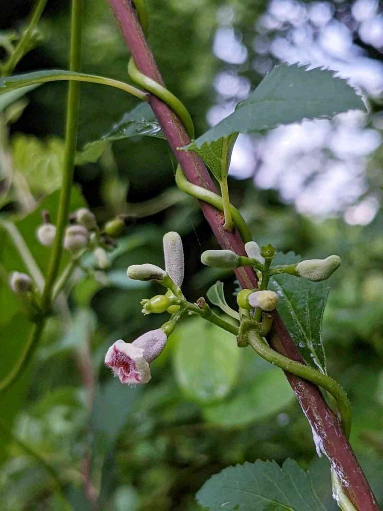 庭の奥 お隣との境の小手毬に絡んでいる去年初めて気付いたヘクソカズラ 今年も咲き出します こんな初々しく可愛い蕾を写したのは初めてです