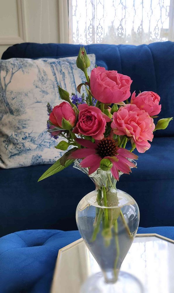 お部屋が白とブルー系なのでお花を差し色に楽しんでいます✨