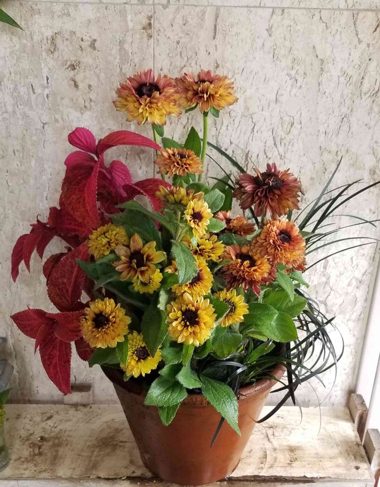 これでもかってくらいルドベキアが華やかな可愛い寄せ植えですね🎶