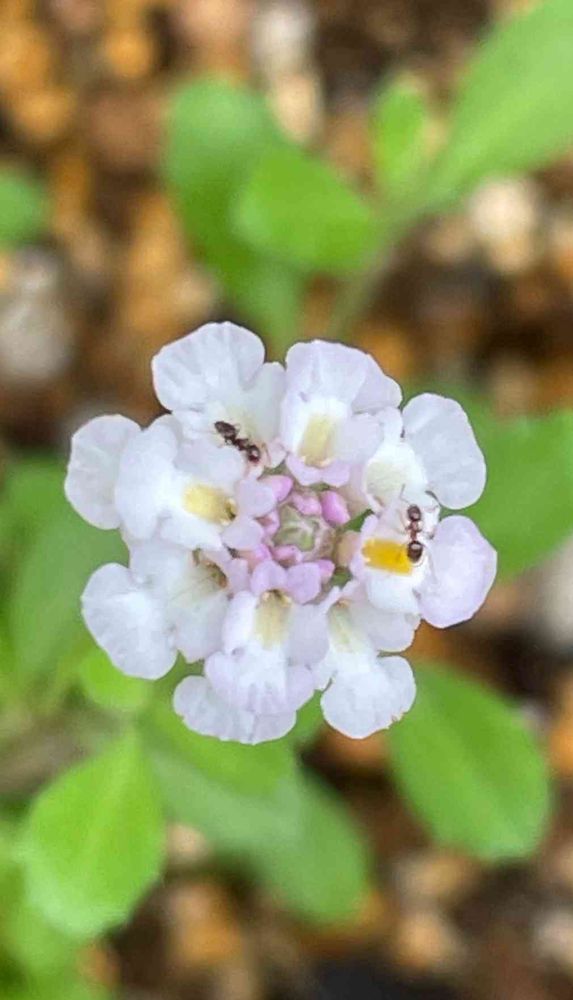 庭の雑草対策に植えたヒメイワダレソウ。厄介なくらい増えるとのネット情報であったので1株だけ植えてみました。お花が咲いたのでドアップで撮ってみたら ありんこさんが せっせと蜜あつめ していました🥰小さな体だから 一食分くらいになるのかな、羨ましい。