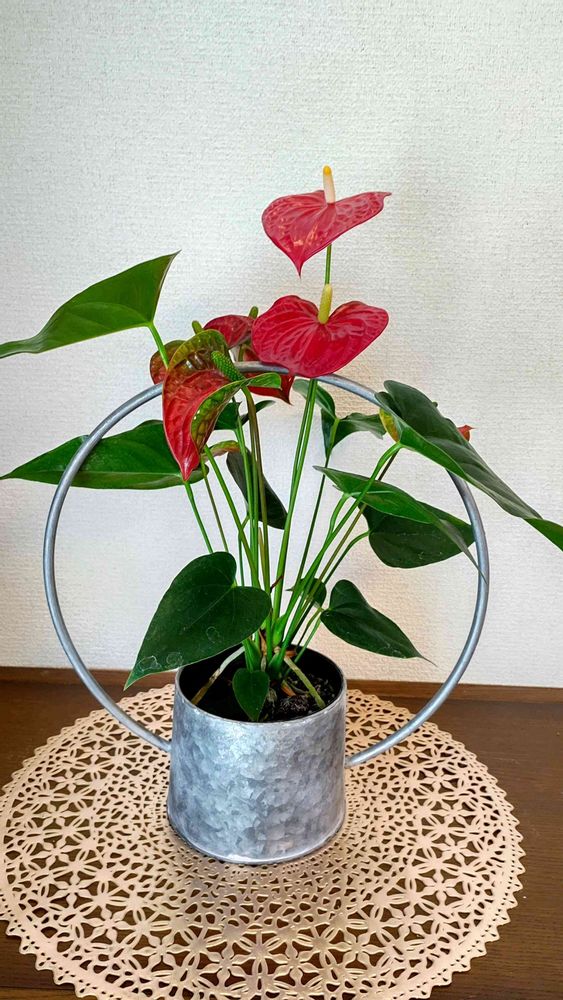 この器が気に入りアンスリウムがちょうどサイズぴったりでしたのでセットでお迎えしたんです。アンスリウムもいろいろな色があるんですね🥰🎶