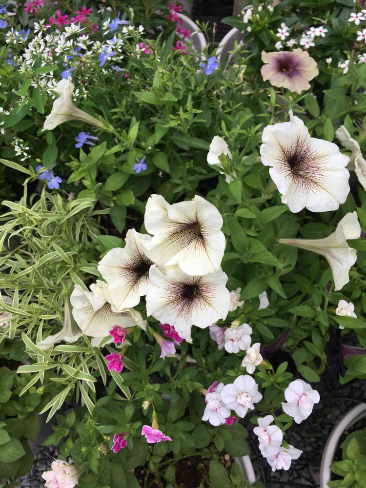 ペチュニアは高温多湿の時すぐヘナッとなります。明るい日陰で調整してます😊