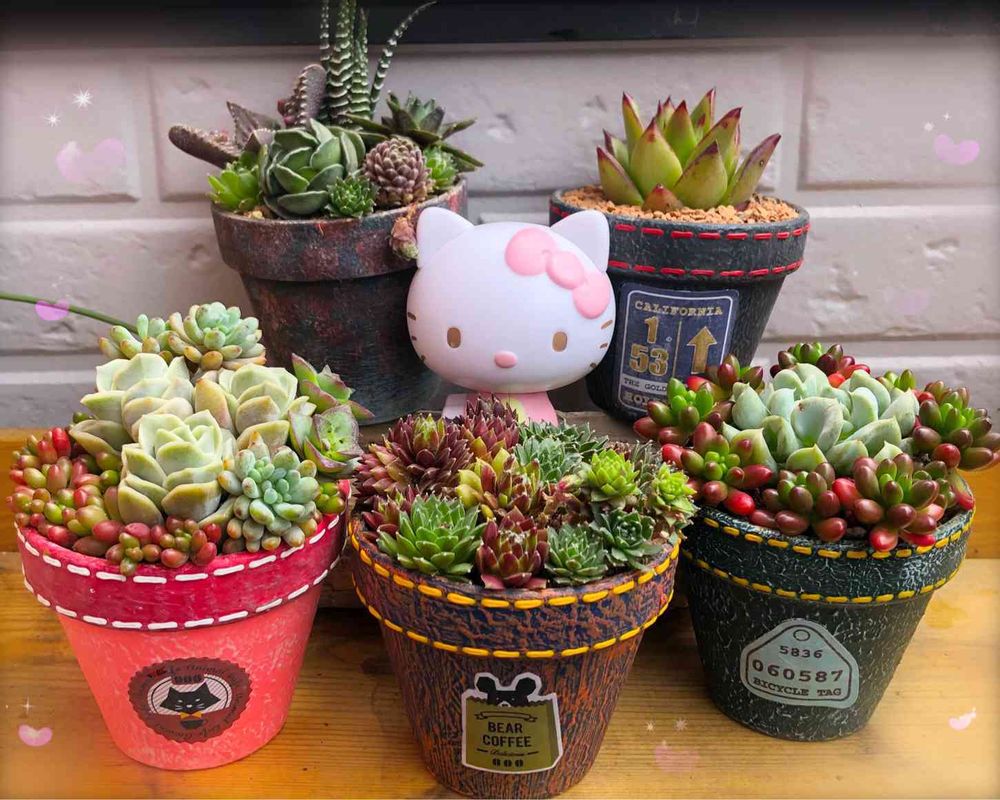 寄せ植えの多肉ちゃんも鉢も可愛いです😍