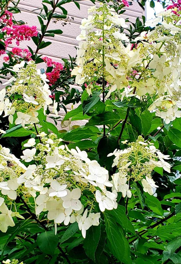 この花は、ラグランジア・ブライダルシャワーっていうみたいです🎵 百日紅の花と対比して見ていただけるように、画面に入れたんですが、とても大きな花房なんですよ💖
