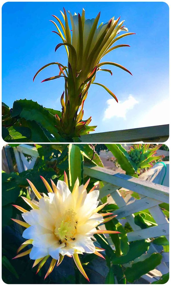 今晩は。最近ドラゴンフルーツの果実を知り食べました。あっさりして食べやすいですね😋そしてこんな花が咲くのは知りませんでした。