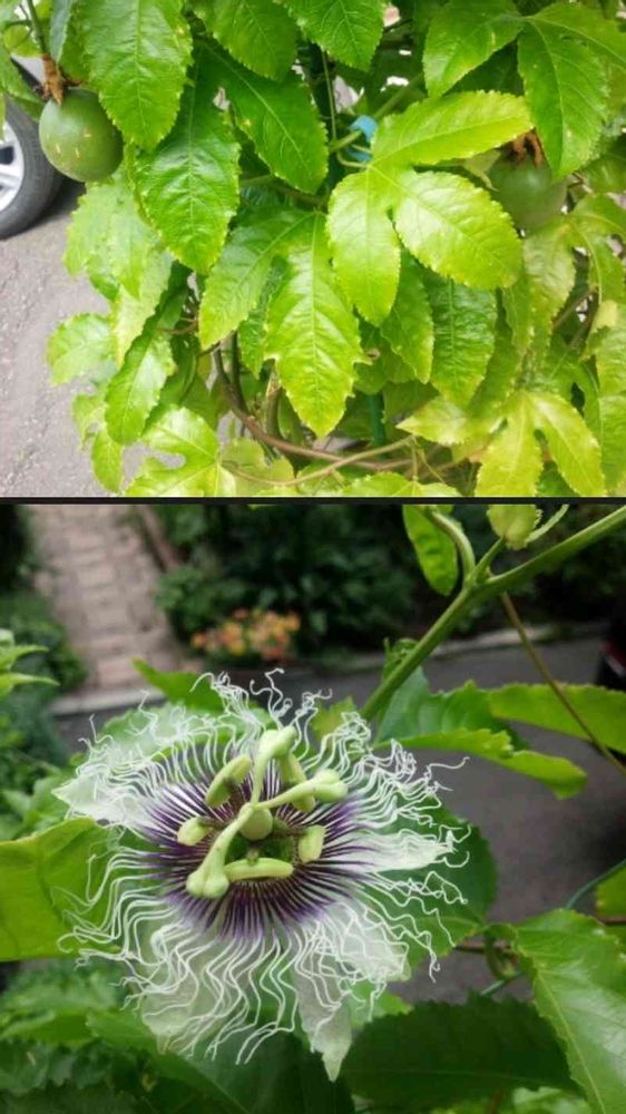 5、6年前食べたパッションフルーツから種を摂り、発芽させた苗から花を咲かせ実を付けました。