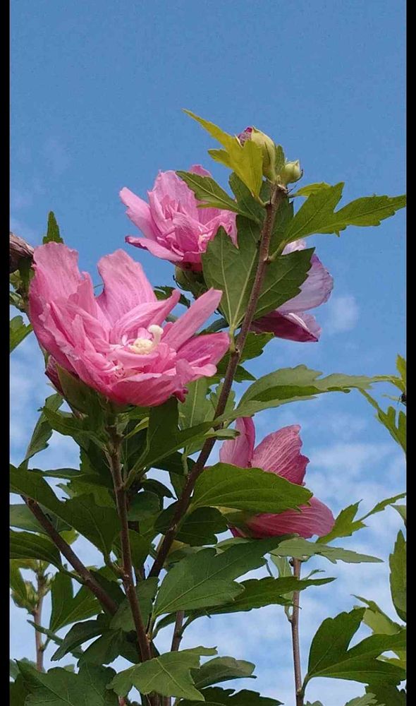 青空に向かってすーと伸びたムクゲさん綺麗ですね