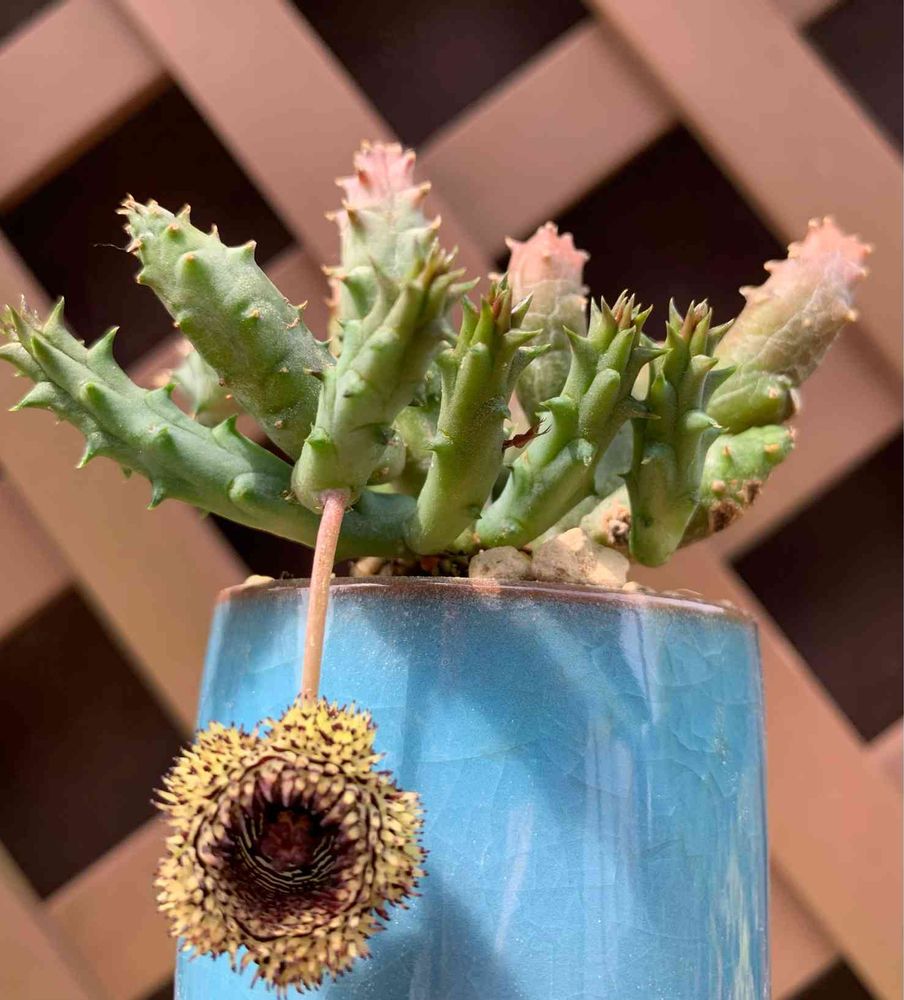 映えるかと、スカイブルーの鉢に入れてみた😆