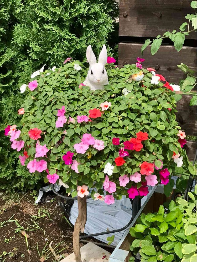 もりもりのお花の中にうさちゃん🐰とリス🐿(∩´∀`∩)♡