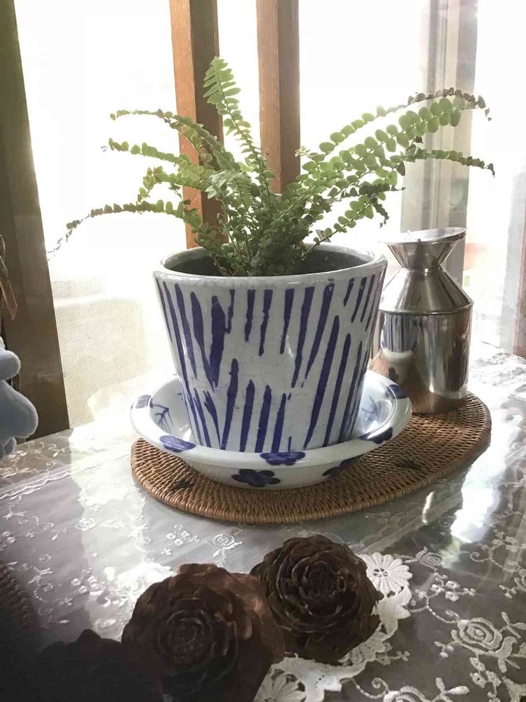 このシダ 🌿 2 月の下旬に 購入し、小さな鉢 だったので、4 月の 下旬に この鉢に 植え替えたので、まだ この鉢で 十分 良い筈なんですが、、、なんか 何だか 調子悪くって、色も よくなくって 要注意‼︎‼︎ 💦 なんですよぉ〜❗️