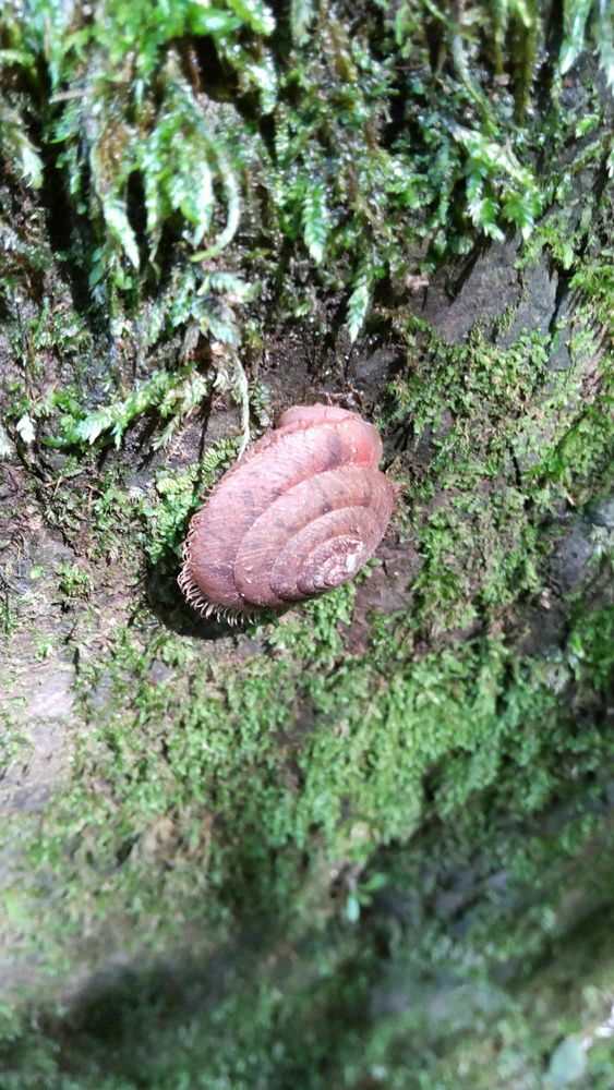 このカタツムリ、殻が薄くて毛が生えてる(@_@)