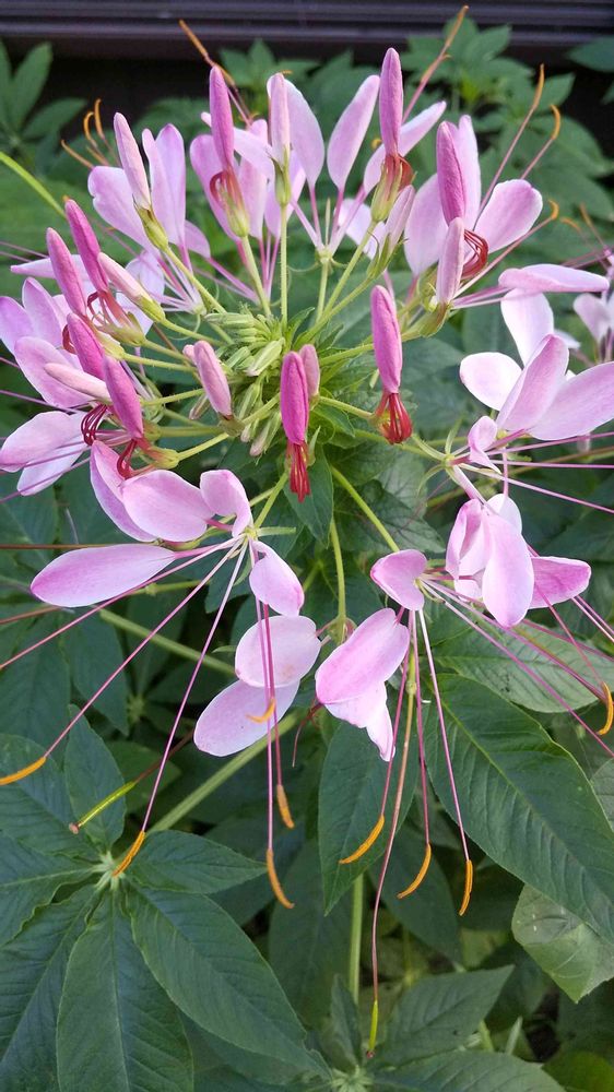 毎日怪しい天候が続いてお花の調子が悪い中、昨日クレオメが咲き、喜んで朝一で投稿したら、今朝はさらに華やかになっていました😄