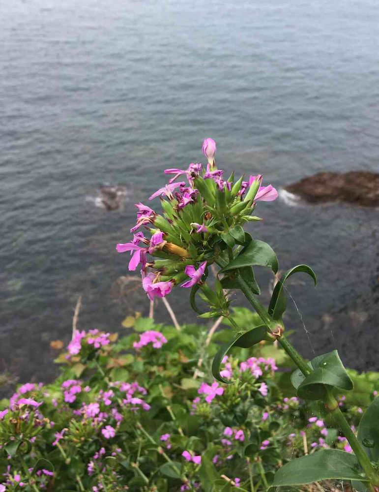 20日のpicはこの崖の下の海岸で見たものです。波がかかる場所でも崖の上でも咲く元気な花でした。