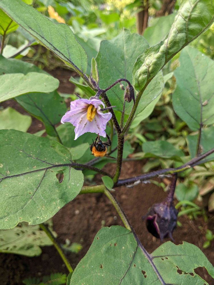 よく見かける🐝さん、おはよう。今朝も忙しいですね~😱🥳🌱🍆🌞