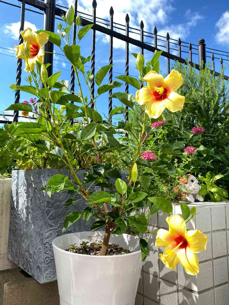 朝、庭の花をのぞいたらハイビスカスが🌼🌼🌼😻