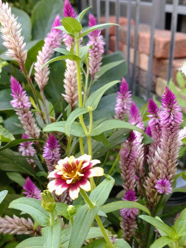 他にもあちこちこぼれ種で育っている普通のケイトウもいます☺️名脇役👍