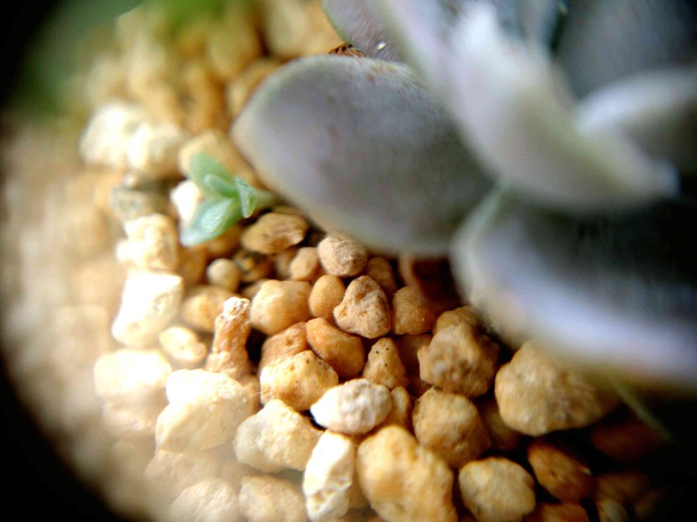 子持ち蓮華の隣にやはり不明の多肉を植えたので多分その赤ちゃんと思いますが、親も名前が分からないのでどうにもなりません💦