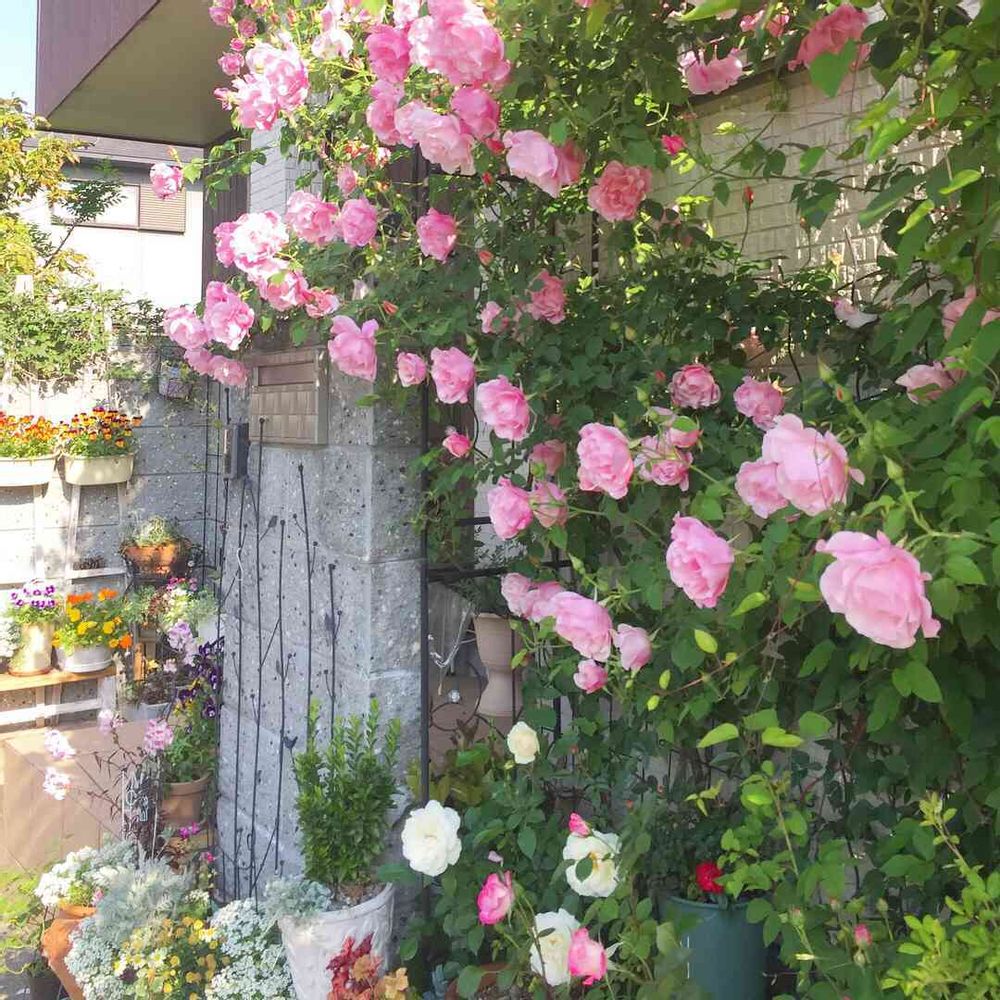 もう巨大なローズヒップと化しておりますが、咲いている間はとても幸せな玄関先となっておりました。