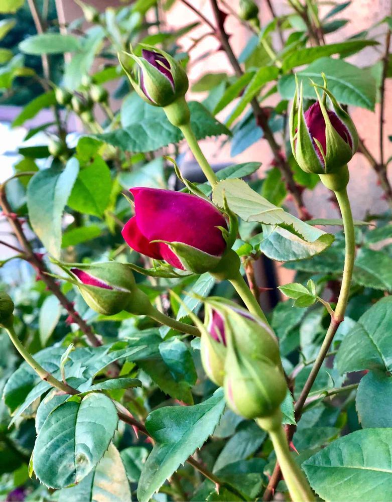 昨日の朝、タップリ水やりしたから、今朝はしなかったのですが、お昼過ぎには水切れでグッタリ😱😱大慌てでお水をあげて、バイオゴールドバイタルとヴィコント064を散布して様子を見守りました。夕方にはご覧の通り、立ち直ってくれました。明日からは毎朝、水やりするからね。ゴメンねー💦💦