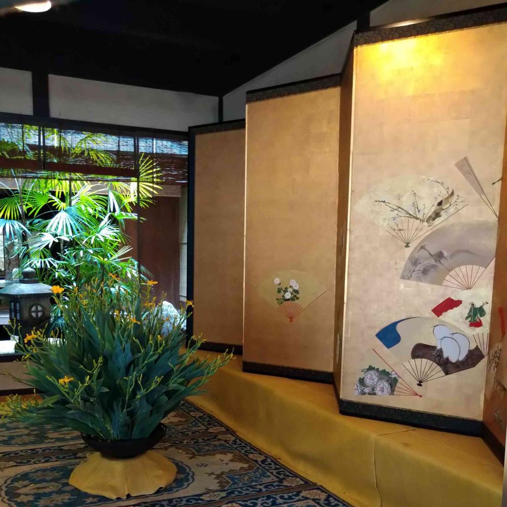 祇園祭には欠かせない🧡ヒオウギ🧡のお花も飾られ、奥には京都らしい素敵なお庭も見えました😍💖
