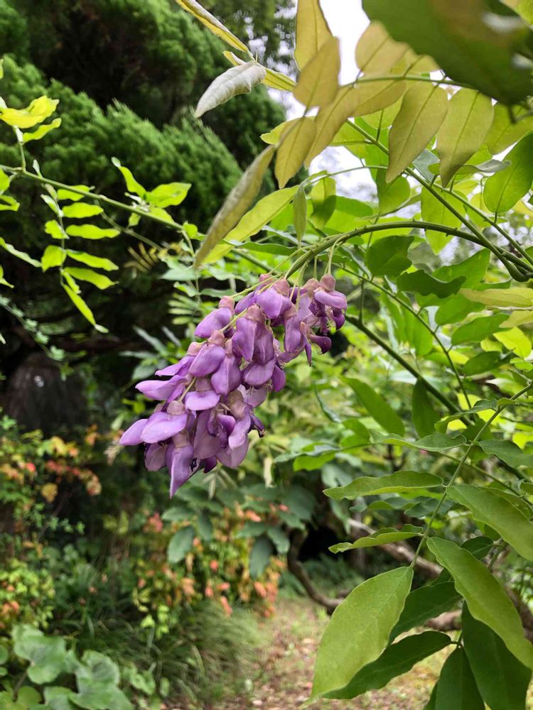 この暑さに狂って藤の花🌸が咲きました。春と違い3.4日で枯れましたが、お花も余計な動力を費やしたのでは⁉️葉っぱも切っても切ってもぐんぐん伸びて、力が有り余っているのかな🤣🤣‼️