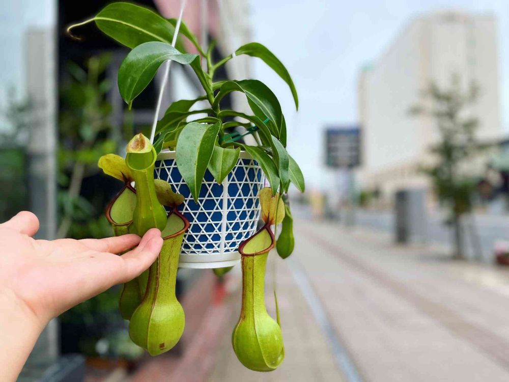 ヒスイはネペンテス(ウツボカズラ)の中でも比較的育てやすいと言われ、魅力は美しく丸いフォルムの大きな捕虫袋!