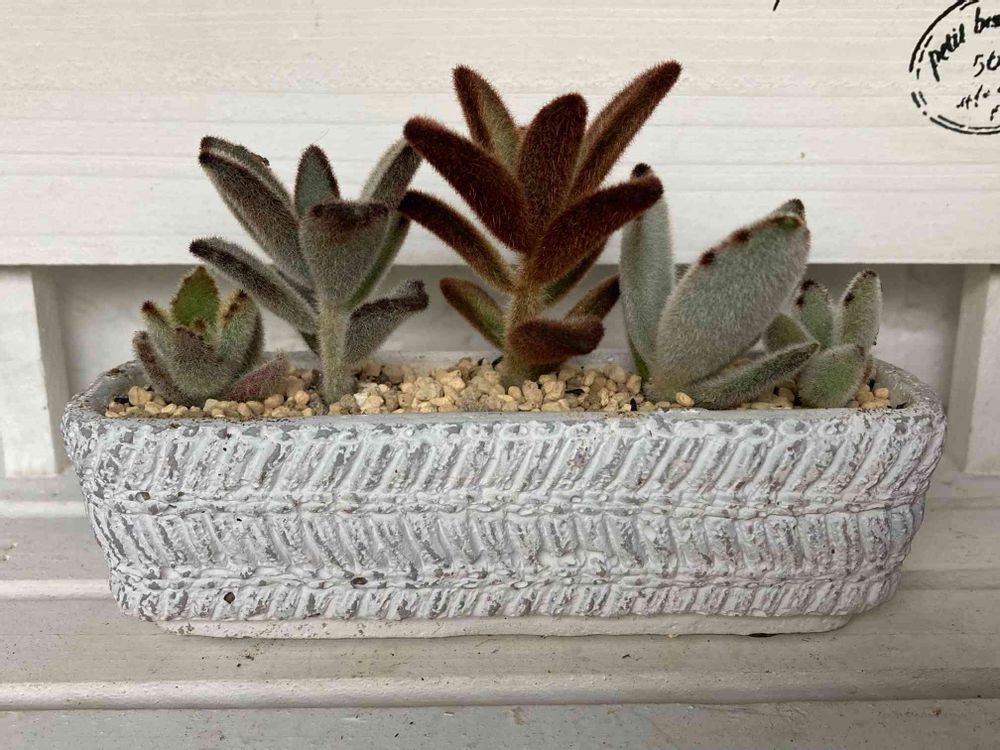 写真は、もともとらあったうさぎ寄せに、先日購入した処分品のゴールデンラビットと、別の鉢にいた子株の月兎耳を足したものです。