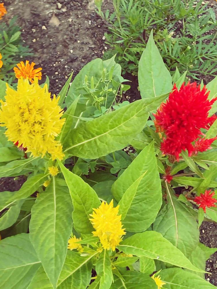 赤と黄色の鶏頭可愛いですね~💛❤💛❤