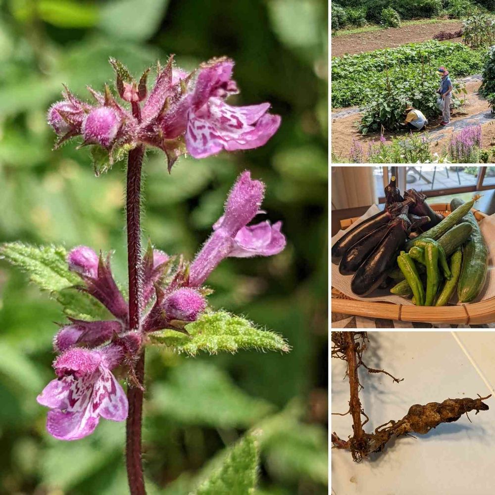 ↗…花友さんと仲良しモンチッチおばさんが畑の野菜を収穫して下さっています👍